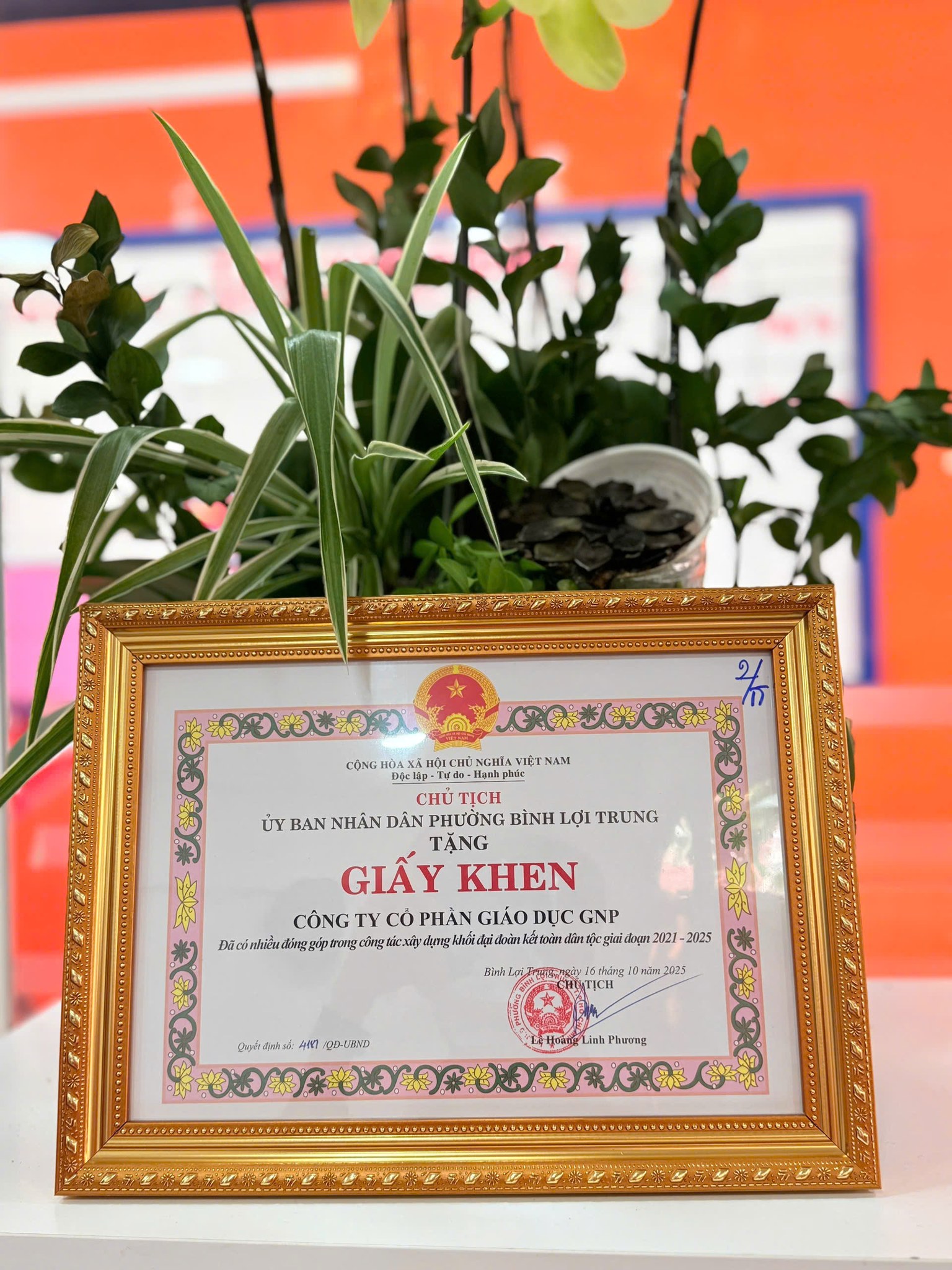 Tại Đại hội, tập thể GNP vui mừng khi được Ủy ban Nhân dân phường Bình Lợi Trung tuyên dương và trao Giấy khen vì “Đã có nhiều đóng góp trong công tác xây dựng khối đại đoàn kết toàn dân tộc giai đoạn 2021 - 2025”. Đây là sự ghi nhận quý báu cho những nỗ lực bền bỉ của GNP trong hành trình đồng hành cùng cộng đồng và xã hội.