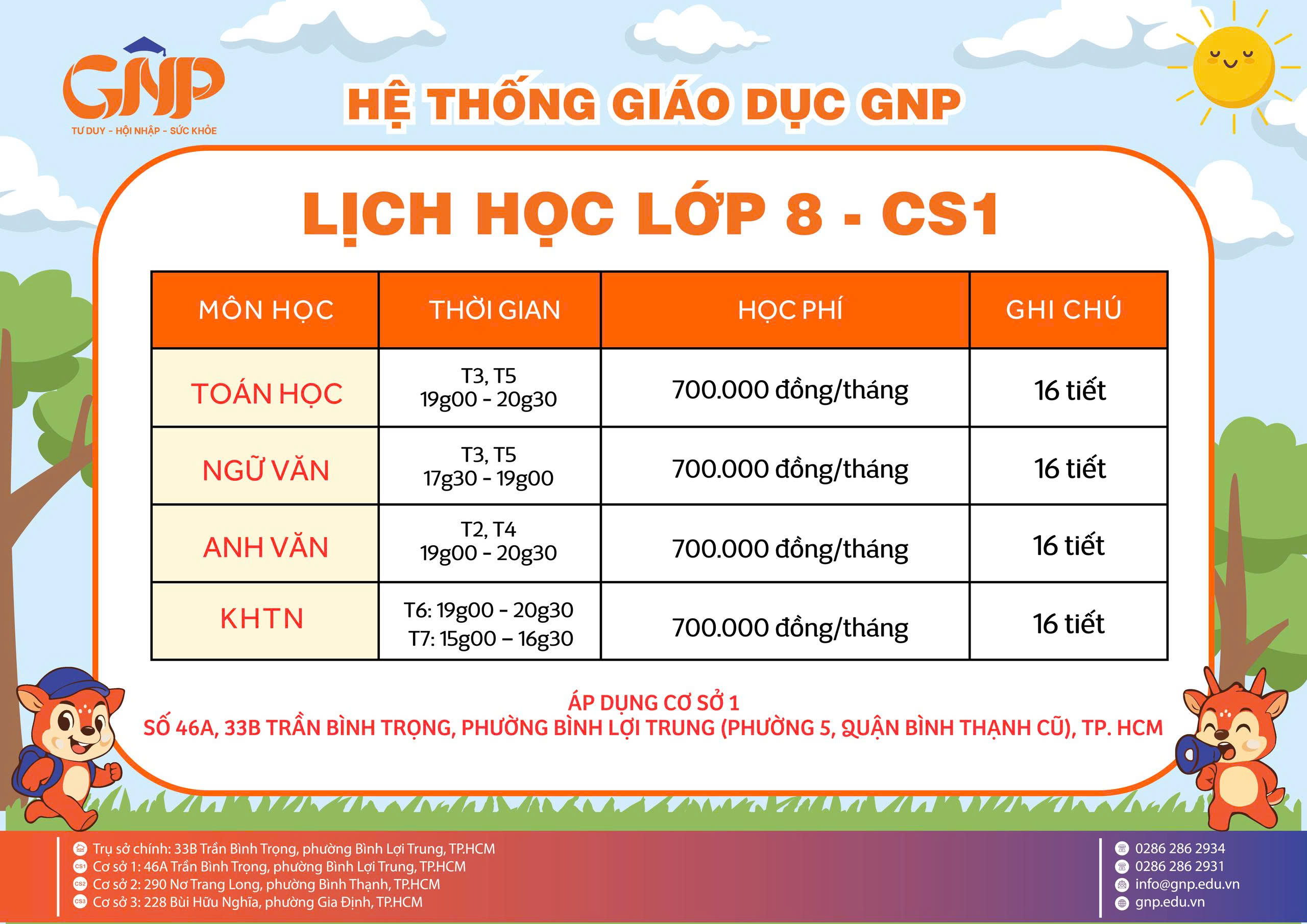 Lịch học các môn lớp 8 - CS1.